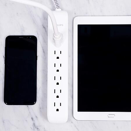 4' Philips 6 Outlet Surge Protector Power Strip w/ Designer Braided Power Cord & Flat Plug Extension (White) $7 + Free Shipping w/ Prime or on $35+