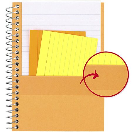 • Tough pockets help prevent tears and hold 4-3/8" x 7" loose sheets and notes. Durable plastic water-resistant front cover helps protect your notes and our Spiral Lock wire helps prevent snags on clothes and backpacks.
