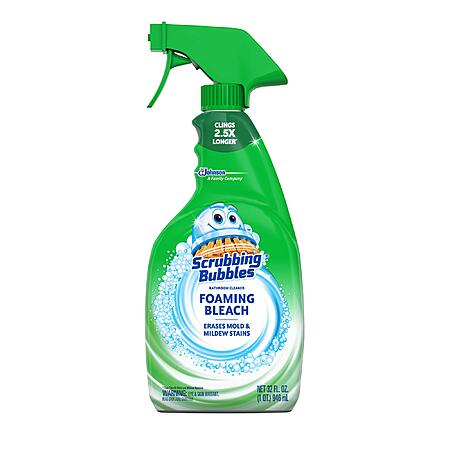 - Scrubbing Bubbles Foaming Bleach has a deep penetrating foam that wipes out soap scum and sends mold and mildew stains running for the drain