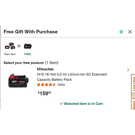 Step 2) Select your "free tool", the M18 XC 5.0 battery pack