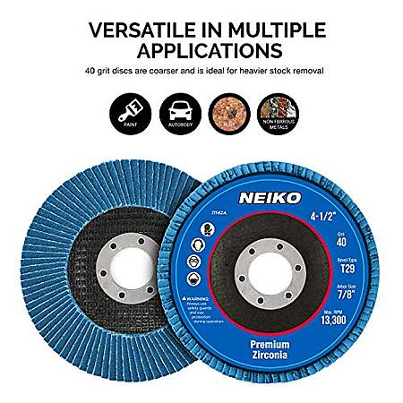 10-Pack NEIKO 11142A Zirconia Flap Discs 4-1/2" for Angle Grinder (Type 29, 40 Grit) for