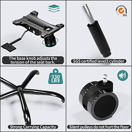 330 lbs Load Capacity and Durable Construction: This chair is made of high-quality materials and has a sturdy 5-point bottom metal base to ensure strength and stability. Whether you're working or playing, enjoy a chair designed to meet your needs