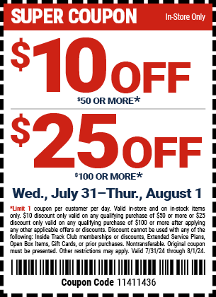 Harbor Freight In-Store Savings Coupons: Qualifying Purchase: $10 Off $50+ or