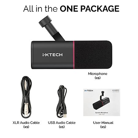 Model: IXTECH Cardioid Dynamic Microphone with Mic Cover, Vocal USB XLR Microphone for Podcasting, Streaming, Recording, Gaming and Voice-Over (Black)