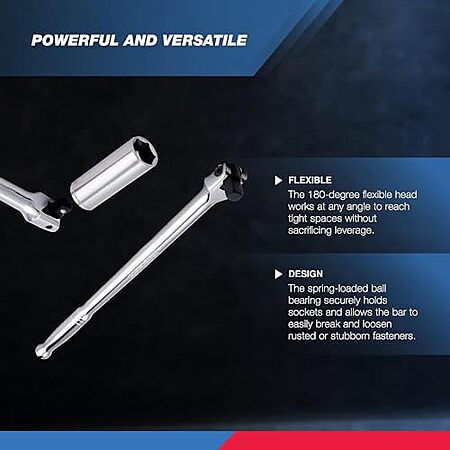 - Spring-load ball bearing holds sockets securely and is ideal to break and loosen rusted, stubborn or stuck nuts and bolts.