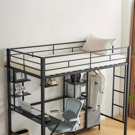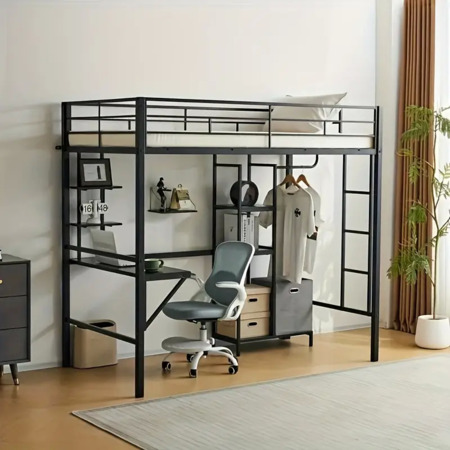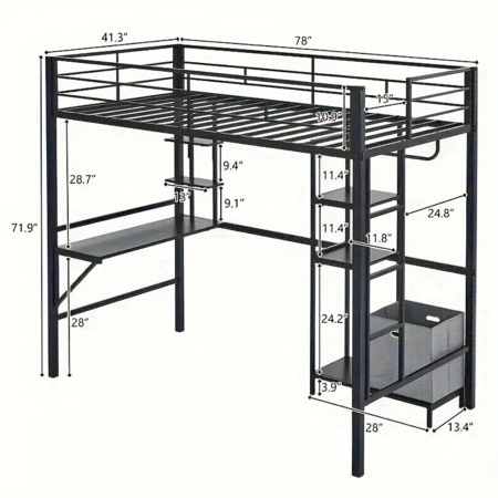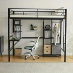 Twin Metal Loft Bed w/ Desk and Storage Shelves $167.19 + Free Shipping