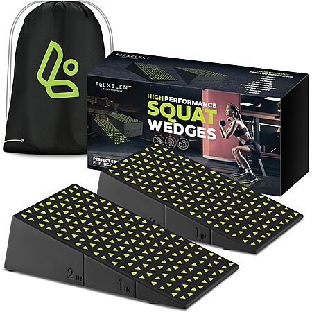 2-Pack Flexelent Anti-Slip Squat Heel Wedge Blocks (Black w/ Lime Green Non-Slip Triangle-Shaped Grips) on sale for