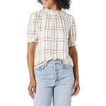 Amazon Essentials Women's Fluid Twill Short Puff Sleeve Smock Detail Shirt (Burgundy Ecru Plaid or Black Gingham) $11.60 + Free Shipping w/ Prime or on $35+