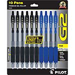 10-Pk PILOT G2 Refillable & Retractable 0.7mm Rolling Ball Gel Pens (6 Black+ 4 Blue)