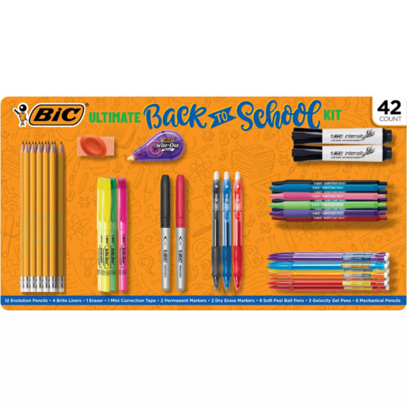 One 42-piece BIC Back to School Kit contains all the school supplies you need including: