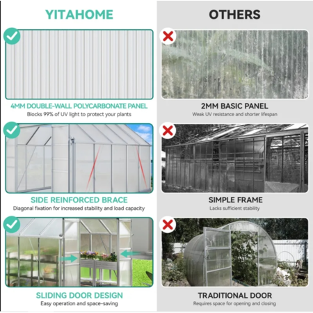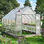 8' x 10' Polycarbonate Greenhouse w/ Sliding Doors & Adjustable Roof Vents $408 + Free Shipping
