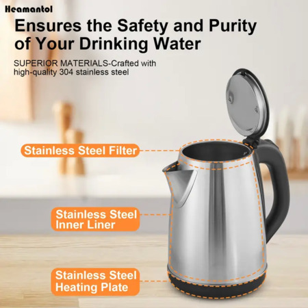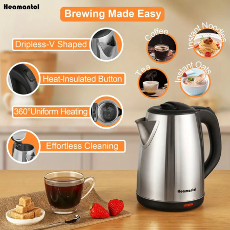 1.8L Electric Kettle, w/ Auto Shut-Off &Boil-Dry Protection (Stainless Steel) for