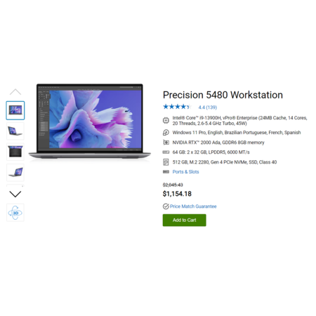 Dell Technologies has Dell Precision 5480 Workstation Laptop on sale for $1,154.18 (or less for new customers). Shipping is free.