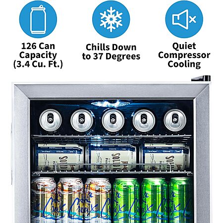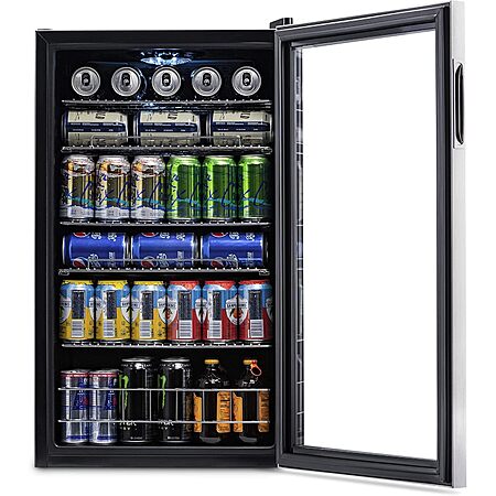 [PERFECT FOR ANY PURPOSE] - Holds everything from soda, beer, wine and more so you can stay stocked for any occasion. Features a reversible glass door and timeless stainless-steel frame so you can view your contents from a glance.