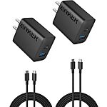 2-Pack Anker 20W Dual Port USB Wall Charger w/ 5' USB-C Cable (Black)