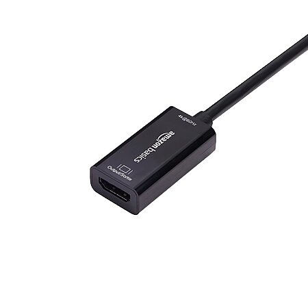 Model: Amazon Basics DisplayPort (4k@60Hz) to HDMI Female Converter (Not compatible with a USB port), Black, 9.25 x 0.87 x 0.47 in