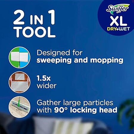 Swiffer Sweeper XL 2-in-1 Dry + Wet Floor Mopping and Sweeping Kit (XL Sweeper + 8 XL Dry + 2 XL Wet Pads) for $16.94 -