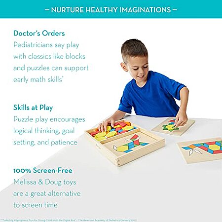 Melissa & Doug Pattern Blocks & Boards (120 Wood Shapes & 5 Double-Sided Panels) $12.31 + Free Shipping w/ Prime or on orders over $35