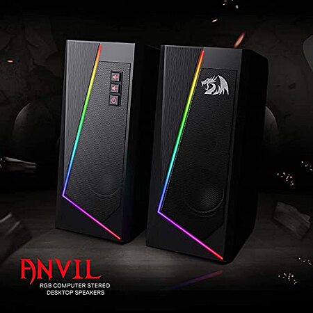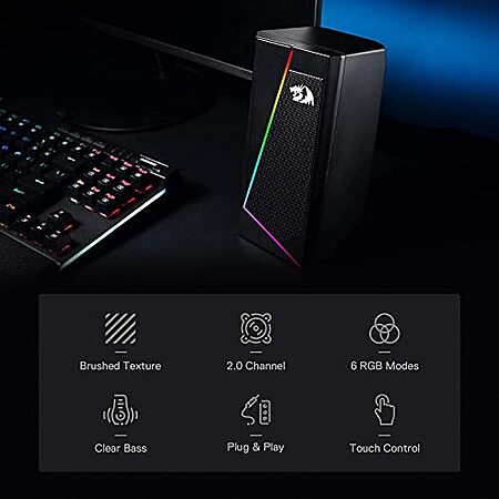 Model: Redragon GS520 RGB Desktop Speakers, 2.0 Channel PC Computer Stereo Speaker with 6 Colorful LED Modes, Enhanced Sound and Easy-Access Volume Control, USB Powered w/ 3.5mm Cable