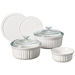 Model: CorningWare French White 7-Pc Ceramic Bakeware Set with Lids, Chip and Crack Resistant Stoneware Baking Dish, Microwave, Dishwasher, Oven, Freezer and Fridge Safe
