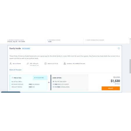 Cruise fares are quoted based on 2 people travelling (double occupancy), travel dates and stateroom category. Using off-peak season dates of September 28 - October 5, 2024 for the lowest category, NCL website is $1530 and Expedia was $1425. See screenshot below if you want. The link in the first paragraph will take you to the search for this itinerary. You just have to change the dates.