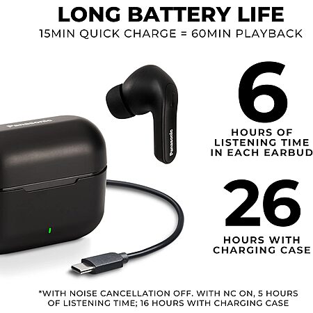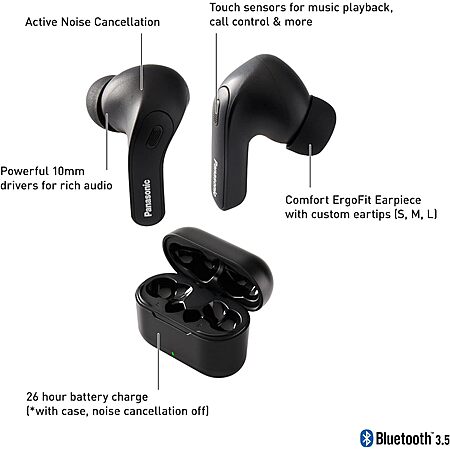 Panasonic ErgoFit True Wireless Earbuds w/ Active Noise Canceling & Charging Case $35 + Free Shipping w/ Prime $34.99