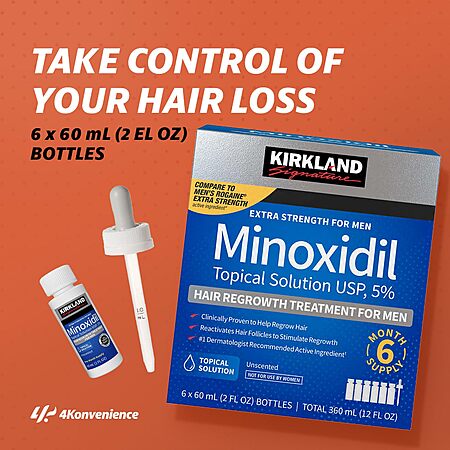 6-pk 2-oz Kirkland Minoxidil Liquid Extra Strength Hair Regrowth Treatment for Men $17.99