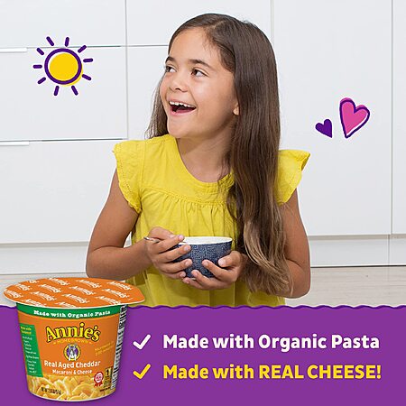 12-Pack 2.01-oz Annie's Macaroni and Cheese, Real Aged Cheddar, Microwavable Dinner Cups 2 for $20.49 ($10.25 Each 12-Pack) + Free Shipping