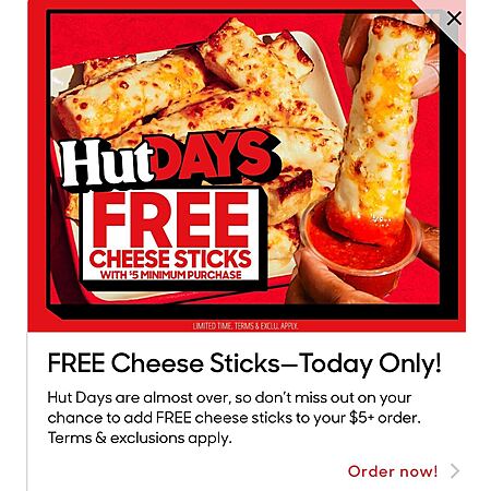 I got the email/code for free cheesesticks. Turns out the three closest locations werent honoring the deal. Closest location was like 10 miles away so I guess it depends on the store, you can check on the app or site to see if they honor the coupon. Got a free large 1 topping pizza via app exclusive offer today though on the other hand!