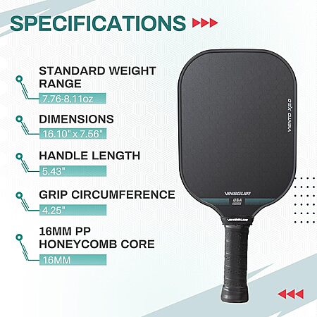 Limited-time deal: VINSGUIR Pickleball Paddle, 16MM Carbon Fiber Pickleball Paddle with Longer Handle, Elongated Paddle with Grit Face/Raw Carbon Fiber Surface/Thermoform - $29.99