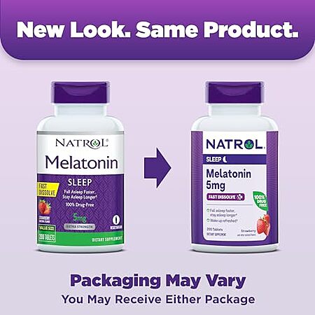 Model: Natrol Sleep Melatonin 5mg Fast Dissolve Tablets, Nighttime Sleep Aid for Adults, 200 Strawberry-Flavored Melatonin Tablets, 200 Day Supply