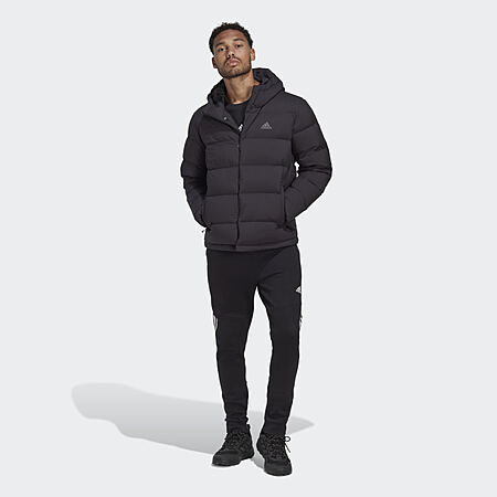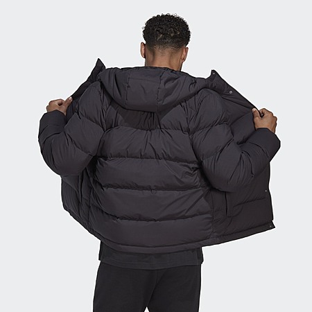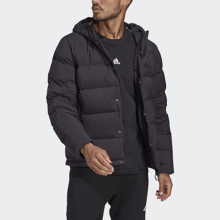 adidas Men's Helionic Hooded Down Jacket (Black/Black) on sale for $112 - 50% off when you apply coupon code