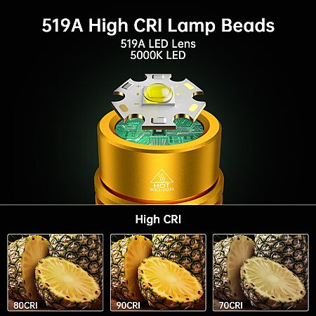 The newly upgraded WK03 Mini Flash Light uses 519A high CRI lamp beads, CRI 90+