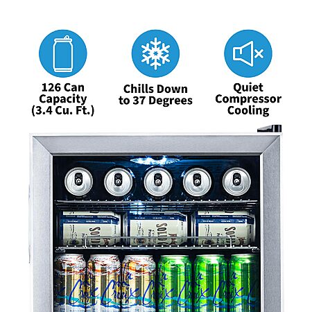 NewAir Beverage Refrigerator Cooler | 126 Cans Free Standing with Right Hinge Glass Door | Mini Fridge Beverage Organizer Perfect For Beer, Wine, Soda, And Cooler Drinks $149