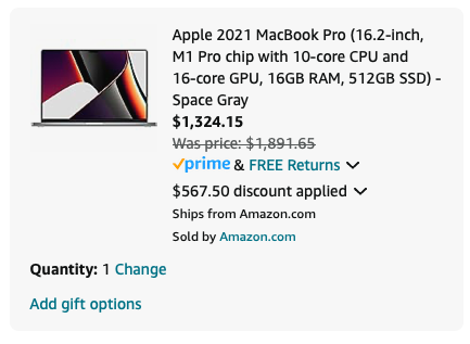Texas Only: New Apple 2021 MacBook Pro (16.2-inch, M1 Pro chip, 16‑core GPU, 16GB RAM) size & color varies
