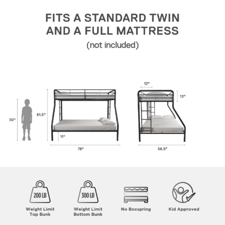 DHP Twin over Full Metal Bunk Bed Frame w/ Integrated Ladder (3 Colors) $128 + Free Shipping