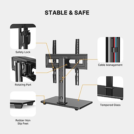 Amazon... OLIXIS Universal TV Mount Stand for 26-55 inch TVs, Height Adjustable, Swivel Table Top TV Stand with Tempered Glass Base, Holds up to 99 LBs, Max VESA 400x400mm https://www.amazon.com/dp/B0D2R3WDTZ