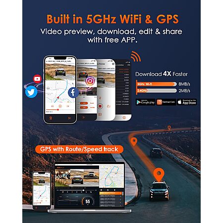 Vantrue E3 3 Channel 2.7K WiFi Dash Cam with GPS $179.99