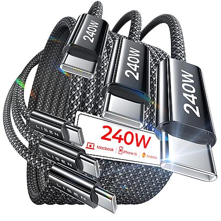 B King via Amazon has 3-Pack LISEN High Speed USB-C to USB-C Charging Cables (3.3' + 3.3' + 6.6') on sale for $6.29 when you apply promo code 37ROPJDO during checkout. Shipping is free w/ Prime or on $35+ orders.