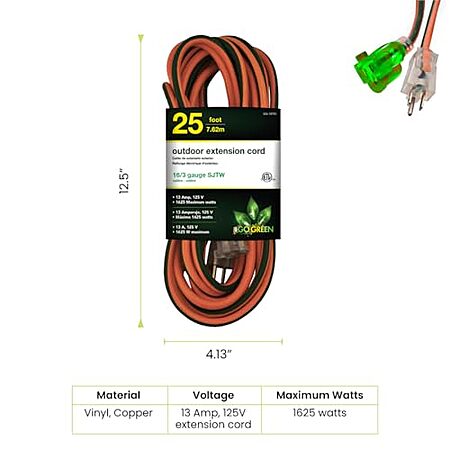 25' Go Green Power Inc. 16/3 Outdoor Extension Cord with Lighted End $7.65 shipped w/ Prime