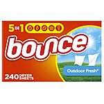 240-Count Bounce Dryer Sheets Laundry Fabric Softener on sale at prices listed below when you clip the 25% off coupon on the product page - 5% when you check out via Subscribe & Save.
