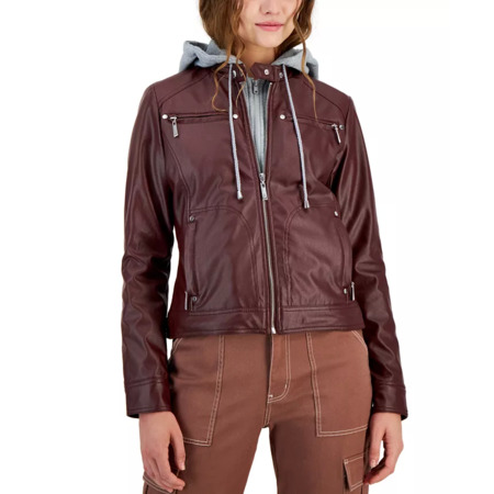 CoffeeShop Juniors' Faux-Leather Long-Sleeve Moto Jacket (Chocolate) $9.96, Jou Jou Juniors' Faux-Leather Hooded Jacket $9.96 & More + Free In-Store Pickup at Macys or F/S on $25