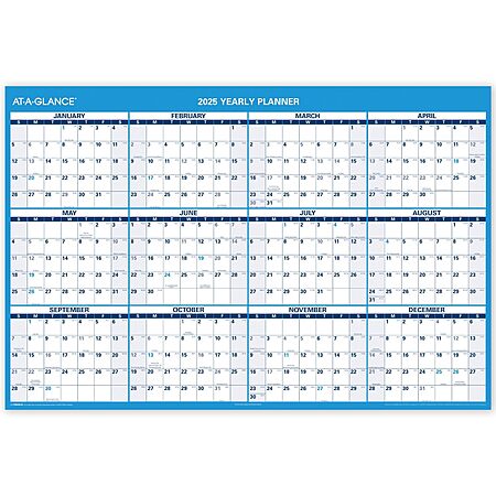- The large, yearly display lets you view all 12 months in an instant. Ideal for long-term planning, the calendar is a convenient reference when mapping out your year.