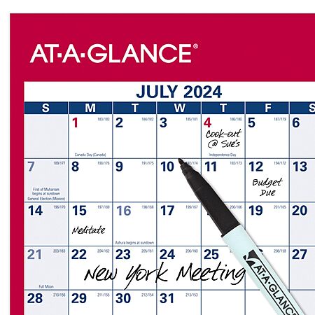 48" x 32" AT-A-GLANCE July 2024 - June 2025 Dry Erase Wall Planner Calendar (Reversible; XL Horizontal) on sale for