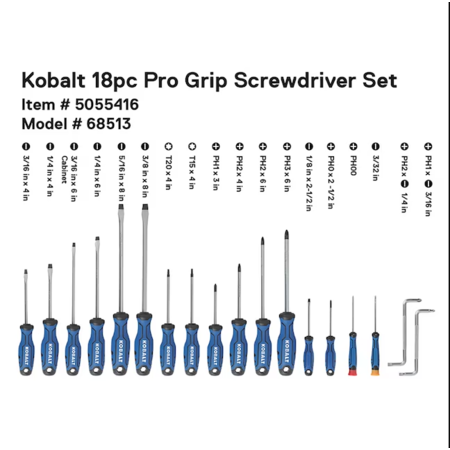 18-Piece Kobalt Plastic Handle Magnetic Assorted Screwdriver Set $20 + Free In-Store Pickup at Lowes