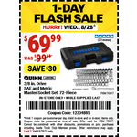 Harbor Freight QUINN 3/8 in. Drive, SAE and Metric Master Socket Set, 72-Piece for $69.99 – WEDNESDAY, 8/28 ONLY