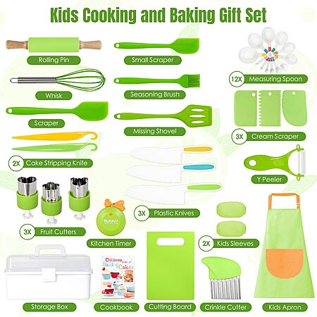 37-Piece Kids Cooking & Baking Set w/ Storage Case, Timer, Kid Safe Knives & Cutting Board $25.48 + Free Shipping w/ Prime or on $35+