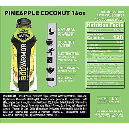 12-Pack 16-Oz BodyArmor Sports Drink (Pineapple Coconut or Blueberry Pomegranate) $8.78 w/ S&S + Free Shipping w/ Prime or on orders over $35