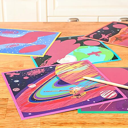 READY 2 LEARN Magic Scratch Paper - Space - 10 Vibrant Scenes - Scratch Art for Kids - Reveal Colorful, Outer Space Designs $7.49