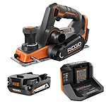 RIDGID introduces the 18V OCTANE Brushless Cordless 3-1/4 in. Planer Kit with Edge Guide, Dust Port, (1) 2.0Ah Battery and Charger. OCTANE Tools feature high performance brushless motors and advanced electronics, providing best-in-class power and intelligence. This tool, when paired with an OCTANE battery, delivers 2.5X the power in high demand applications even when used on the tougher woods, such as oak. This hand planer also offers the industry's only adjustable chamfer depth. This gives the option to customize and complete even the most complex decorative finish work. The 2.0 Ah Battery and 18V Charger are compatible with all RIDGID tools. Upon registration, this 18V OCTANE Brushless Cordless 3-1/4 in. Planer Kit includes planer blades, a dust bag, an edge guide, a hex wrench, a 2.0 Ah Battery, an 18V Charger, and an operator's manual.